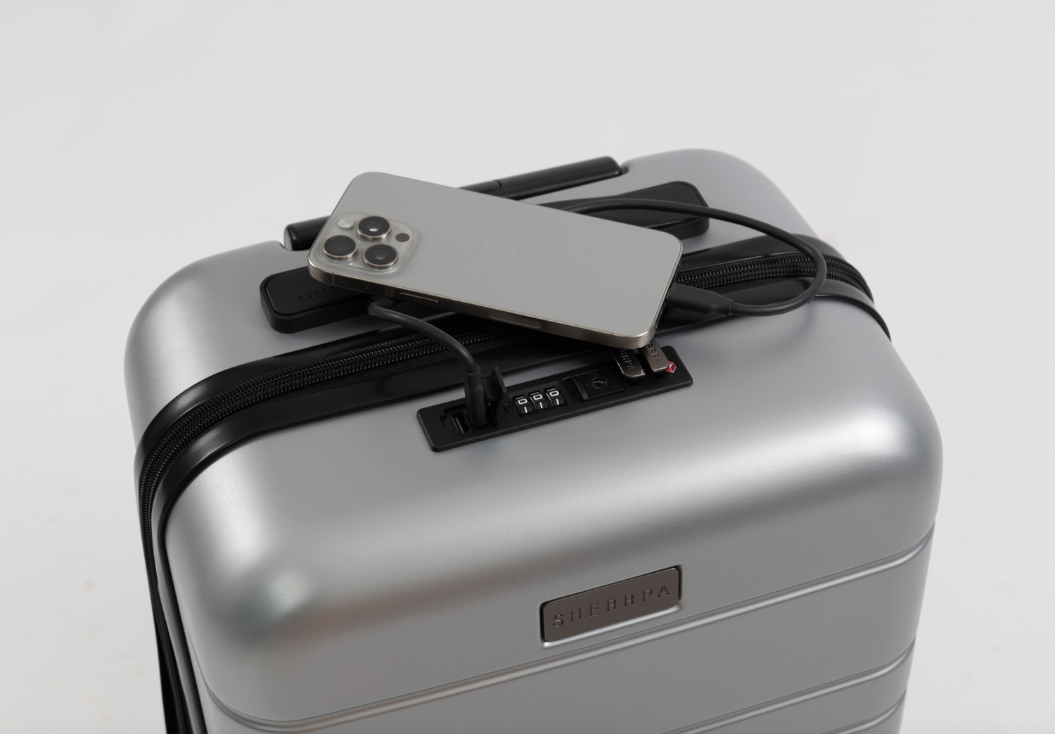 All our carry-ons come with a USB and USB C port. Plug in your portable battery pack and charge on the go.